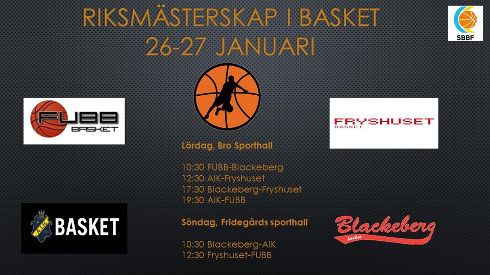 Varmt välkomna att heja fram våra killar som spelar RM tillsammans med AIK Basket, Blackeberg Basket och Fryshuset basket. Matcherna spelas under lördagen i Bro sporthall och i Fridegård under söndagen!