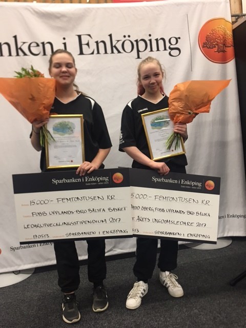 David Öberg som är coach för F04/05 har av Enköpings Sparbank utsetts till årets ungdomsledare i Håbo och därmed tilldelats ett stipendium på 15 000:- för sina insatser. Vi i FUBB är mycket glada och stolta för Davids skull, han är en suverän ledare med ett hjärta av guld och ett tålamod som få. Dessutom är han en hejare på basket. Under denna säsong har han lyckats lotsa sina 04-tjejer till semifinal i Lions och även förberett sina 05-or inför nästa års seriespel med EB-basket. Eftersom David själv var upptagen med eget matchspel, semifinal F04, vid utmärkelsen i lördags så bad vi två av våra duktiga smurledare i Bålsta, Emelie & Lisa, att ställa upp Davids räkning och det gjorde de med den äran. Dessutom tilldelades FUBB BASKET med ytterligare 15 000:- till föreningen för ledarutveckling. Grattis David!